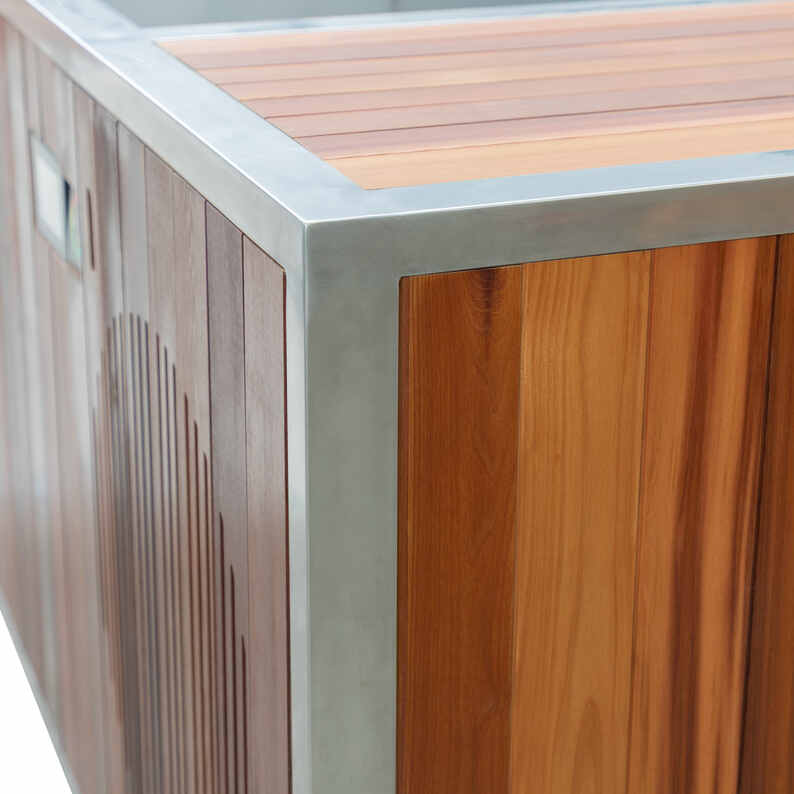 Sen vahvistettu, nolla-flex-rakenne ja kaupalliset materiaalit tekevät siitä täydellisen ammattiurheilijaterapiaan keskuksia, kylpylöitä ja vilkasta hyvinvointia. Kylpyammeen setripuinen ulkopinta lisää ensiluokkaista estetiikkaa ruostumattomasta teräksestä valmistettu sisäpuoli takaa helpon puhdistuksen ja pitkäaikaisen luotettavuuden.